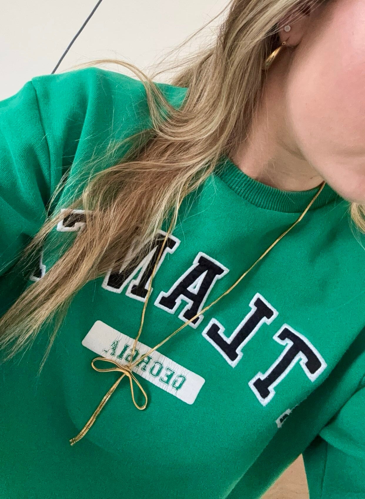 65 cm lang, de strik is ook verstelbaar dus je kan zelf bepalen hoe je hem draagt.